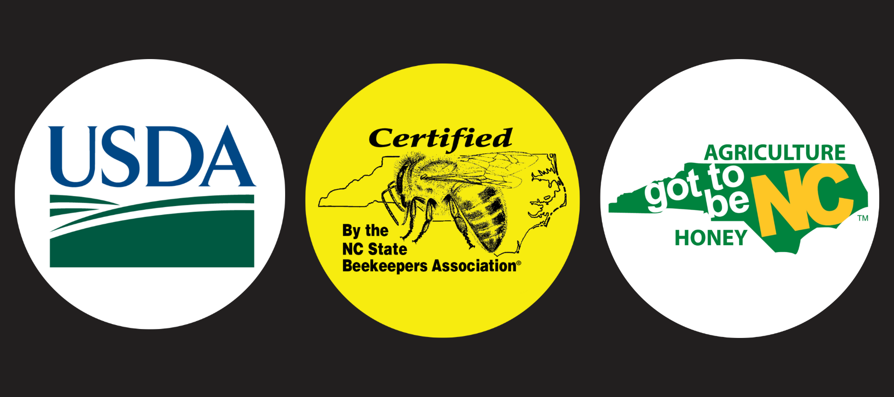 Our operation primarily focuses on local honey production in North Carolina by utilizing quality bees and natural forage. In our operation, we observe an abundance of wildflower nectar being collected by our honey bees, including blackberry, black locust, clover, tulip poplar, and many other flower species that naturally occur in the beautiful landscape of North Carolina. This diversity enables us to harvest three distinct honey varieties throughout the year. Each of our varietals offer a unique color and award-winning flavor profile that is loved by many throughout our state. Our honey is raw, straight from the hive with nothing added.