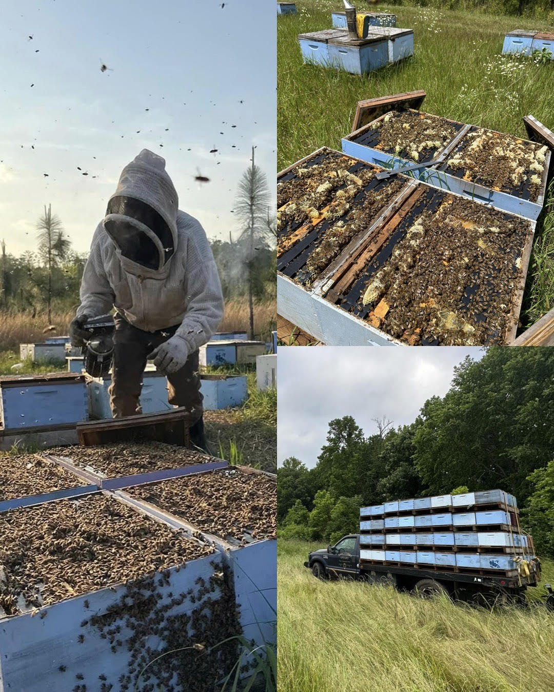 Each winter, we take hundreds of our North Carolina honey-producing hives down to southern Georgia to get a head start on queen rearing, colony splits, and five frame nuc production for our beekeeping customers. Before the North Carolina spring honey flow hits, we bring all of our hives back to North Carolina and sell honey bee nucs to customers within our state and beyond.